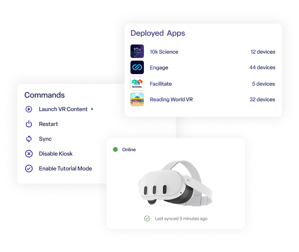 Launch VR content across headsets, guide students remotely, and spend less time troubleshooting.