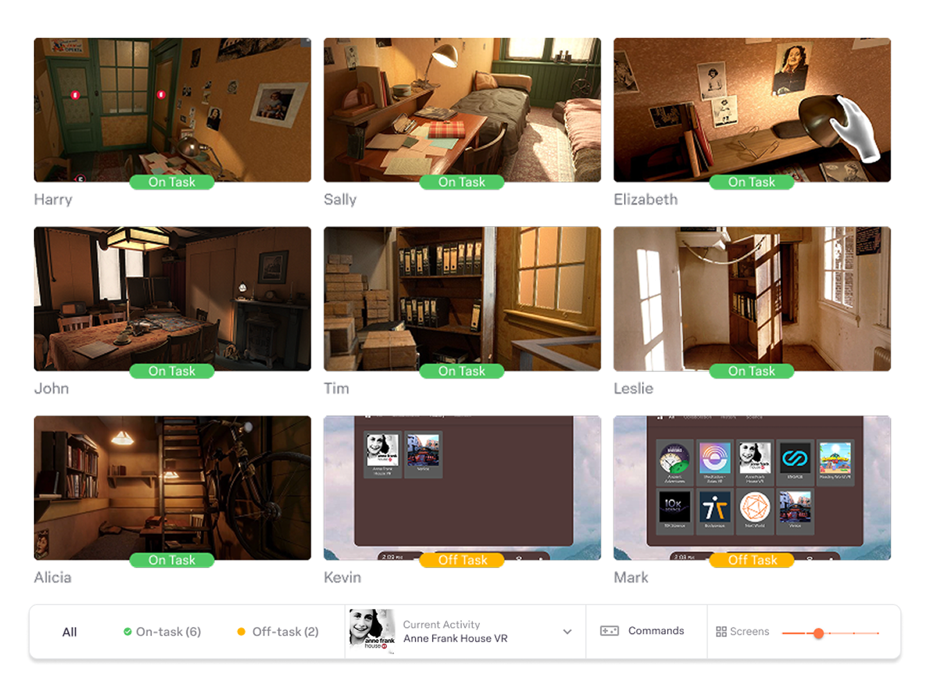 Immediately see who’s on-task, who’s stuck, and who might need help. Spot and fix technical issues like low batteries before they disrupt the session.